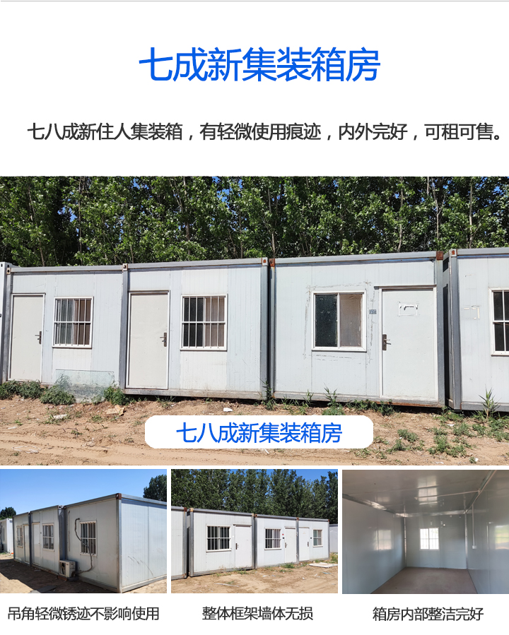 二手集裝箱房北京二手集裝箱房二手集裝箱房九成新二手工地打包箱房二手集裝箱房八成新二手住人集裝箱二手集裝箱房七成新二手住人集裝箱,有輕微使用痕跡,整體完好。二手集裝箱房六成新二手集裝箱房,結(jié)構(gòu)完好,有明顯使用痕跡。二手集裝箱房產(chǎn)品優(yōu)勢(shì),全鋼框架,50mm巖棉保溫墻板二手集裝箱房?jī)?yōu)勢(shì)對(duì)比二手集裝箱房材料優(yōu)質(zhì),專(zhuān)為工程項(xiàng)目臨建房定制二手集裝箱房專(zhuān)業(yè)安裝團(tuán)隊(duì),運(yùn)輸,安裝一站式服務(wù)二手集裝箱房多家合作伙伴二手集裝箱房源頭廠家,可租可售,簽訂正規(guī)銷(xiāo)售合同